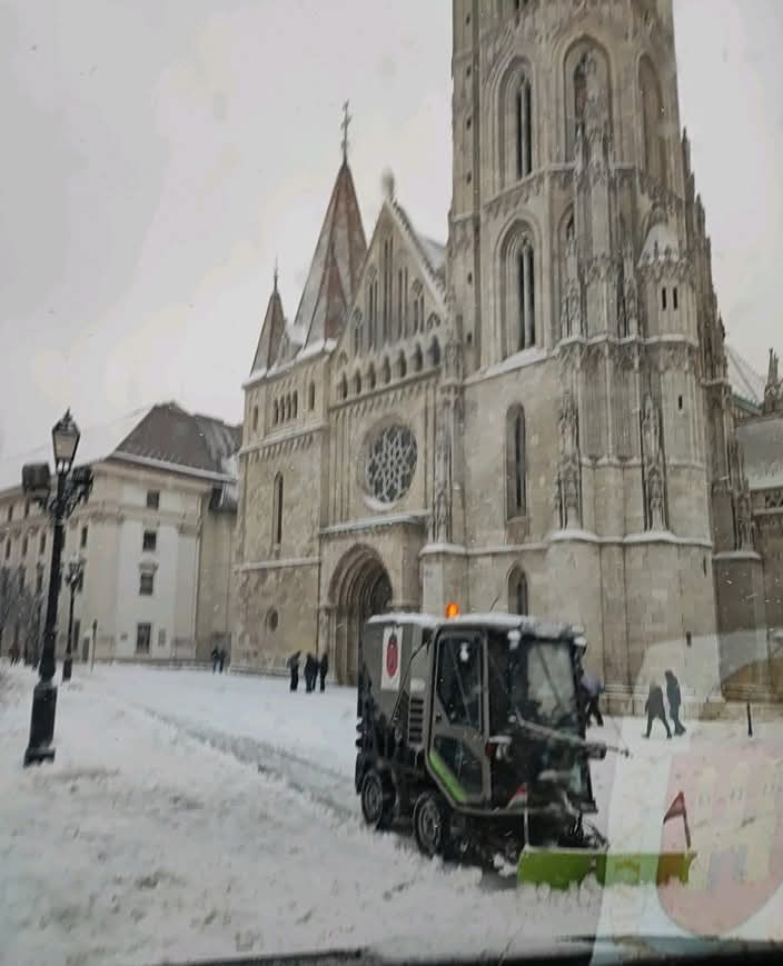 бизнис | 08.02.2026 Македонско возило привлече внимание на улиците на Будимпшета: GREEN MACHINES чисти снег кај будимската тврдина