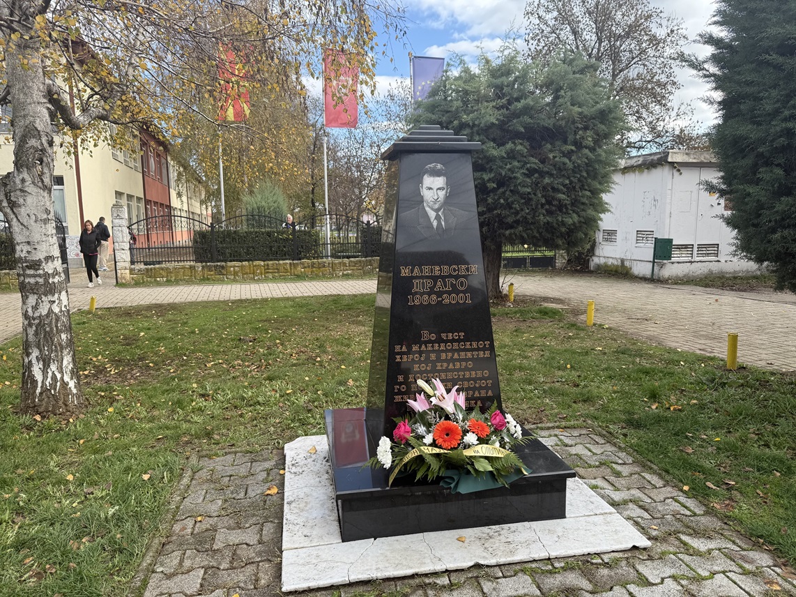 мкд | 11.11.2025 Положено цвеќе пред споменикот на Драго Маневски, македонски бранител и припадник на безбедносните сили