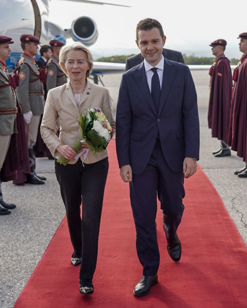 мкд | 15.10.2025 Фон дер Лајен пристигна во Скопје, Муцунски очекува потврда на поддршката за европската интеграција