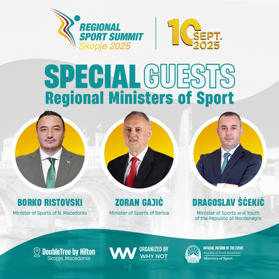 спорт | 03.09.2025 Министрите за спорт од Србија и Црна Гора дел од Првиот Регионален Спортски Самит во Скопје