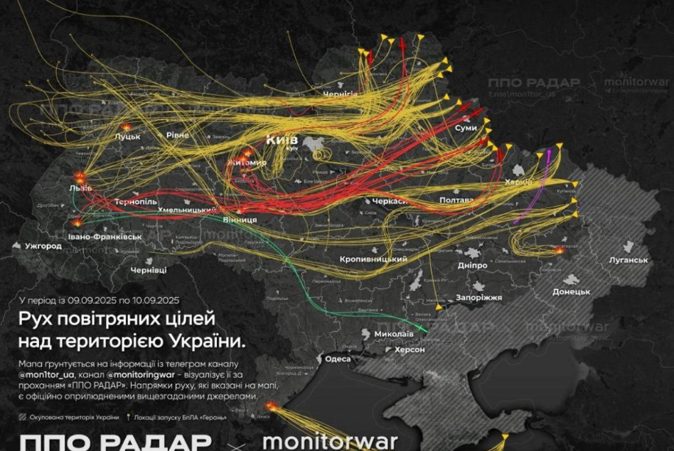 свет | 10.09.2025 Објавена мапа од синоќешниот руски напад врз Украина: прикажани и дроновите што влегле во Полска