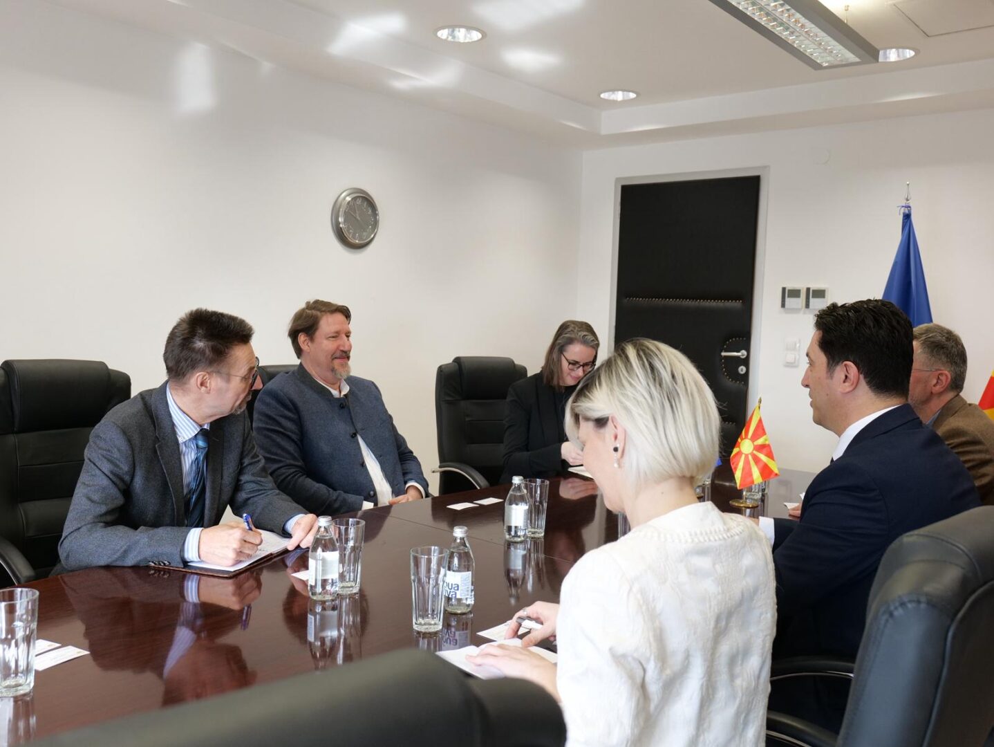 На средбата беше разговарано за процесот на европска интеграција и за последниот извештај на Европскиот парламент за Република Северна Македонија, усвоен со мнозинство гласови во јули 2025 година, во кој се нотира постигнатиот напредок и се нагласува потребата од отстранување на политичките блокади во процесот на пристапување.