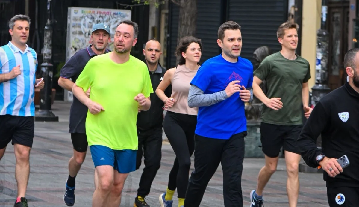 Шест километри низ градот беа одлична можност, во неформална и спортска атмосфера, да споделиме дел од енергијата на Скопје и да ѝ ги приближиме на белгиската делегација препознатливите обележја на нашиот главен град“, напиша Муцунски.