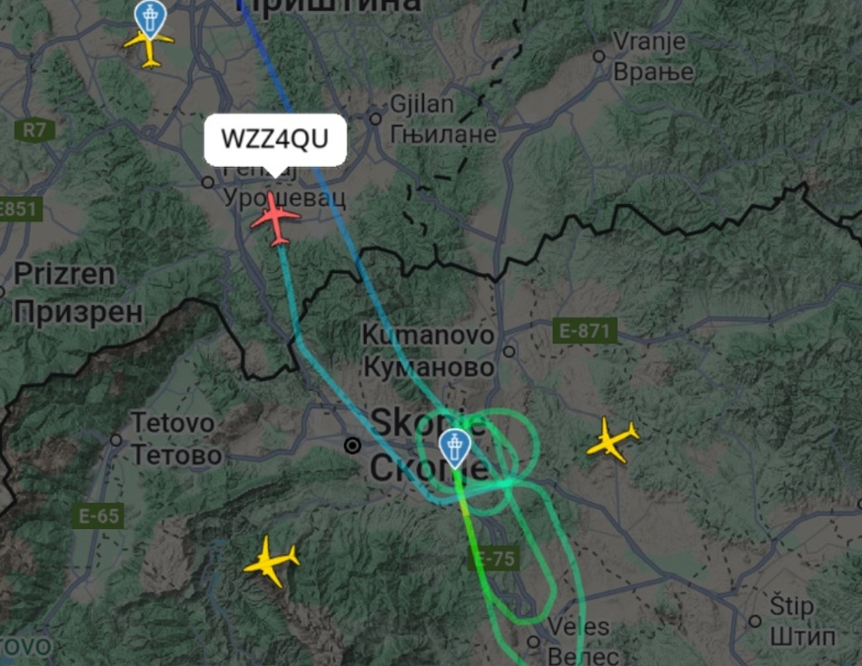 „Поради силен јужен ветер, кој го зафати скопскиот регион, два авиони се пренасочени за слетување кон приштинскиот аеродром, додека други два сè уште кружат и чекаат насоки за слетување“, рече Ангелов.