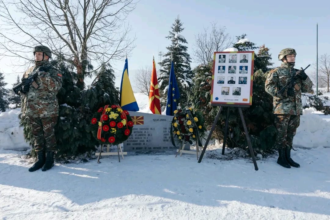 Во хеликоптерската несреќа, на денешен ден пред осумнаесет години, враќајќи се од мировната мисија АЛТЕА трагично загинаа потполковник Тони Спасовски, мајор Горан Ристовски, капетаните Бране Спасовски и Игор Ѓорески, наредниците Славчо Василев и Тони Давитковски, постарите водници Јанко Шириќ и Александар Тасковски, водниците Мики Ивановски и Александар Васиќ и десетарот Златко Вељаноски.