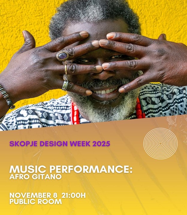 Во сабота, на 8 ноември, во Јавна соба, како дел од програмата на Skopje Design Week, македонската публика ќе има ретка можност да ја доживее концертната промоција на албумот „Afro Gitano“ ,заеднички проект на Тони Китановски, легендарниот Баба Сисоко од Мали и диџеј Гоце САФ.