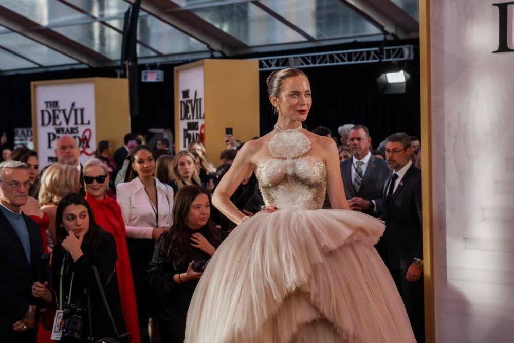 Сепак, главниот збор сега го зеде третата актерка – Емили Блант, која предизвика вистинска возбуда на премиерата на гореспоменатиот филм во Њујорк. За оваа пригода, таа одлучи да облече спектакуларен фустан од модната куќа Скијапарели од колекцијата мода пролет 2026.